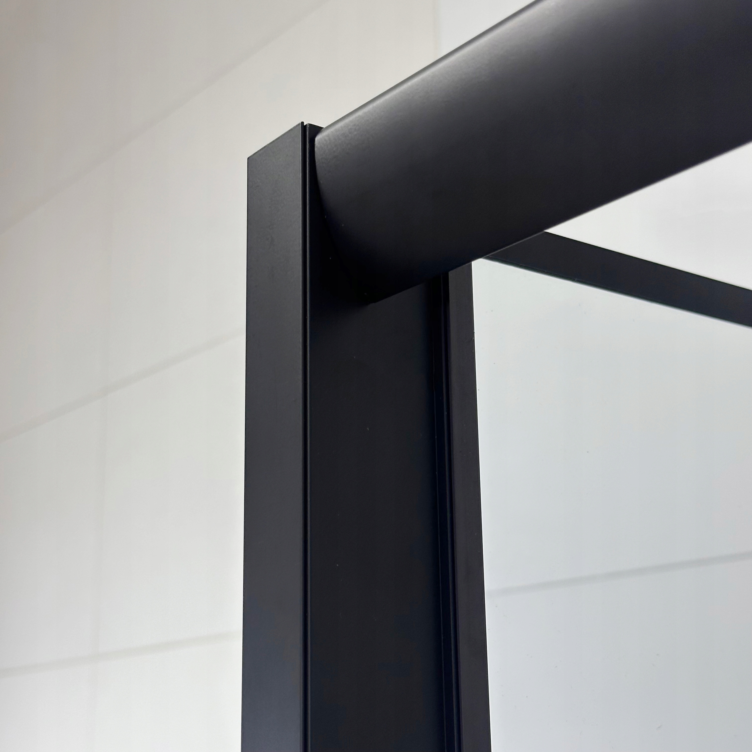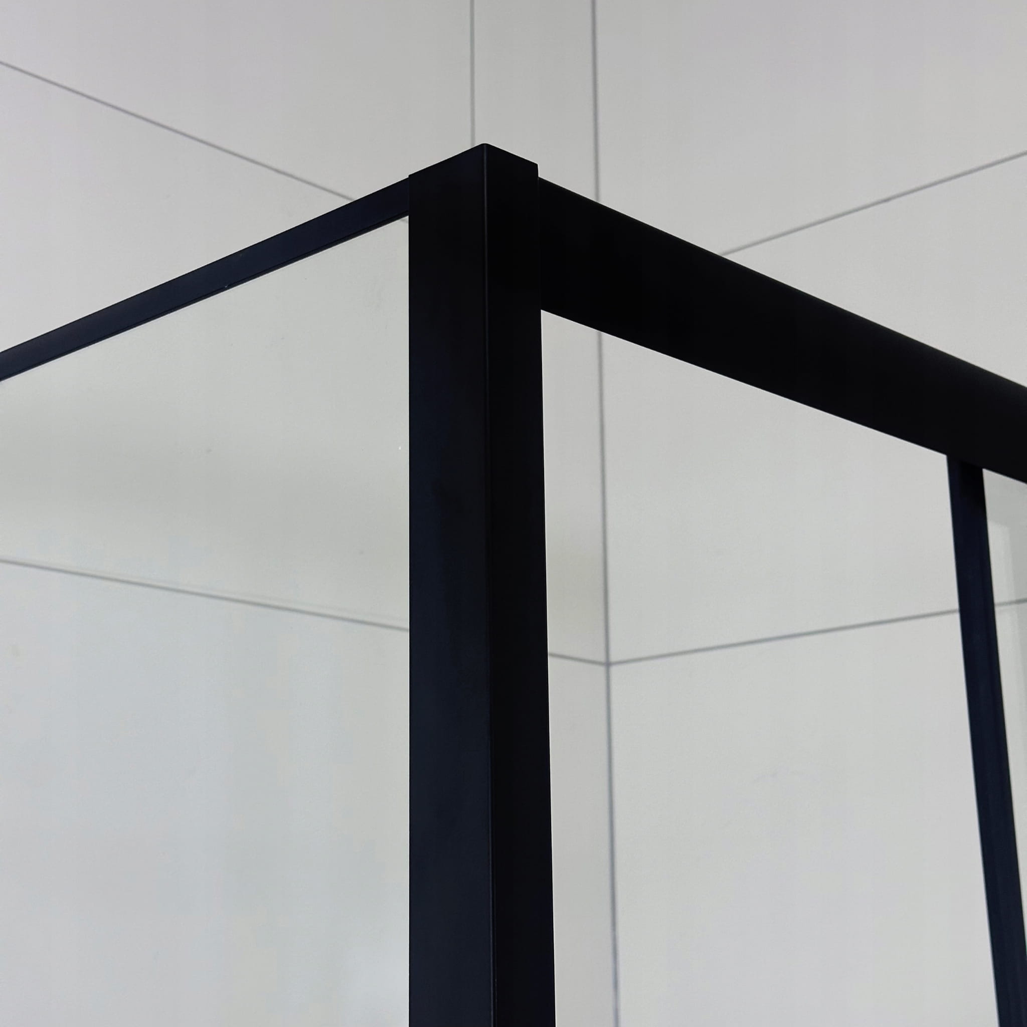 6-milimetrowe szkło hartowane zapewnia bezpieczeństwo, a podwójne rolki na łożyskach gwarantują płynne przesuwanie drzwi. Profil aluminiowy w modnym czarnym macie podkreśla nowoczesny charakter zestawu.